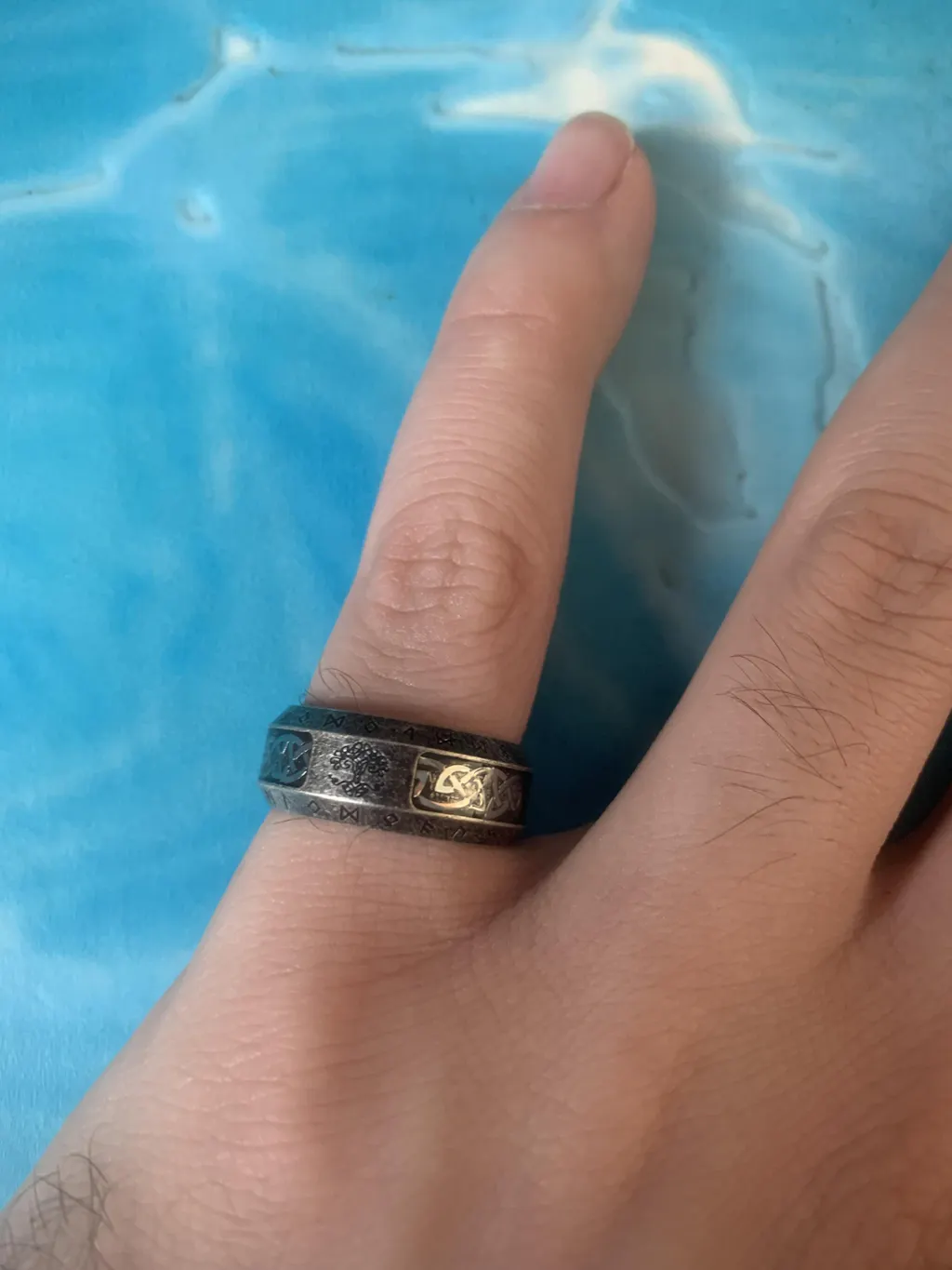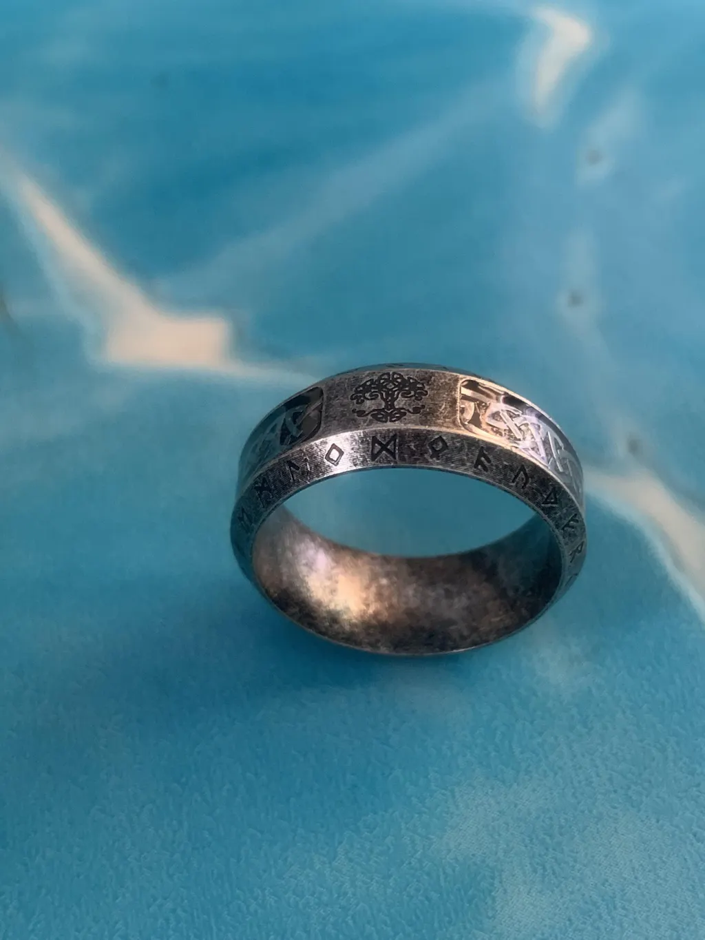 My husband is super obsessed with the Viking history/culture. He has numerous tattoos and swears up and down he was a Viking in his past life. 🥴 So, when I came across this ring with the runes I had to get it. The runes on the ring actually match the ones in his tattoos so that’s a plus.This ring is gorgeous, it feels of quality material and fits like a glove for my husband. He’s a size 10 for reference. Highly recommend.