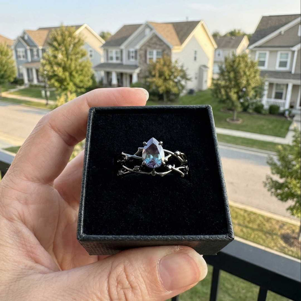 This ring is beautiful. I have very small hands. I love the color of the material and I'm so happy with my purchase, I'm going to buy the material one as well. Great price and quality. Buy both of them. Inspired by Norse mythology, the Drop of Yggdrasil Ring is a reminder of cosmic balance.