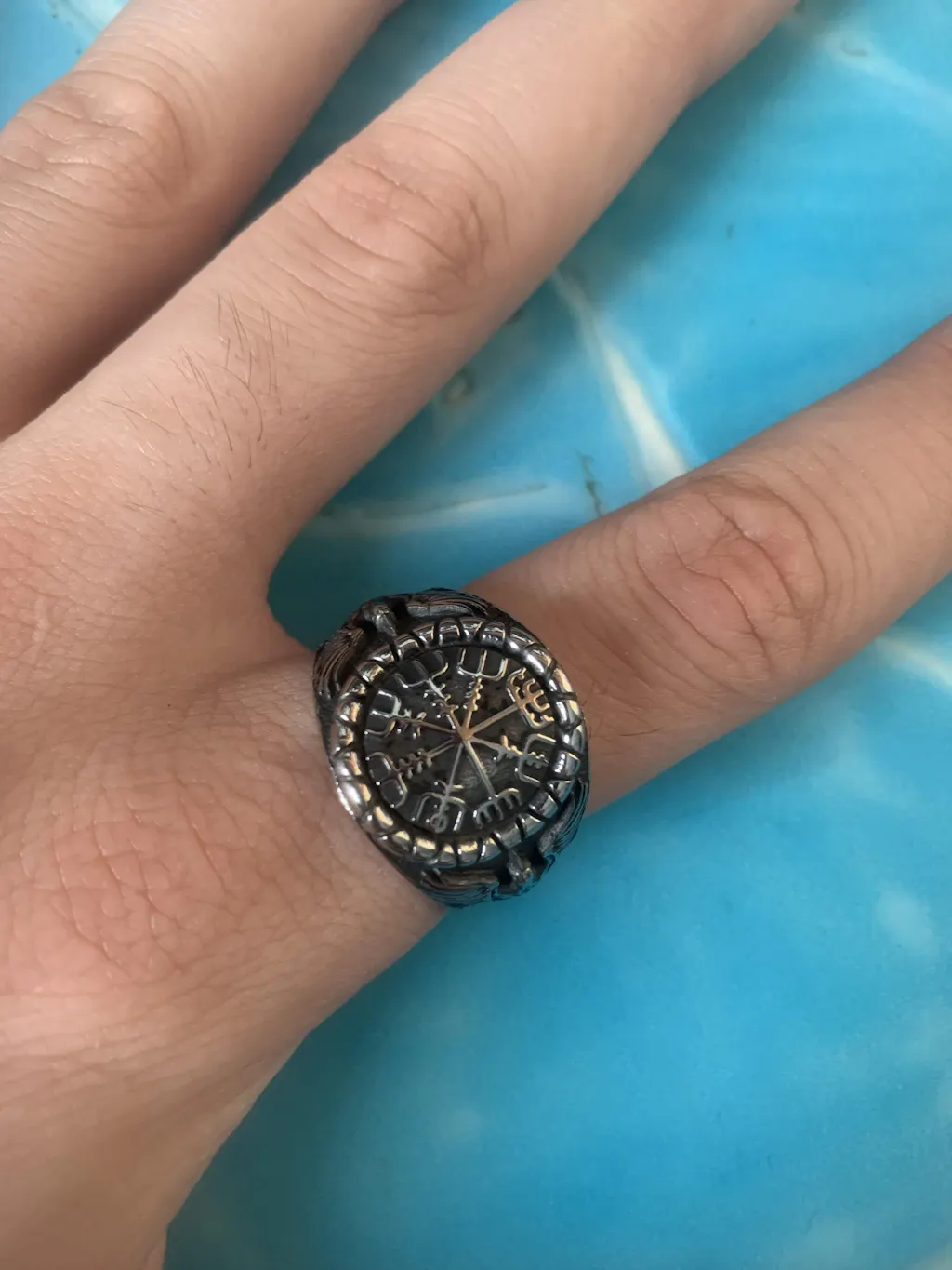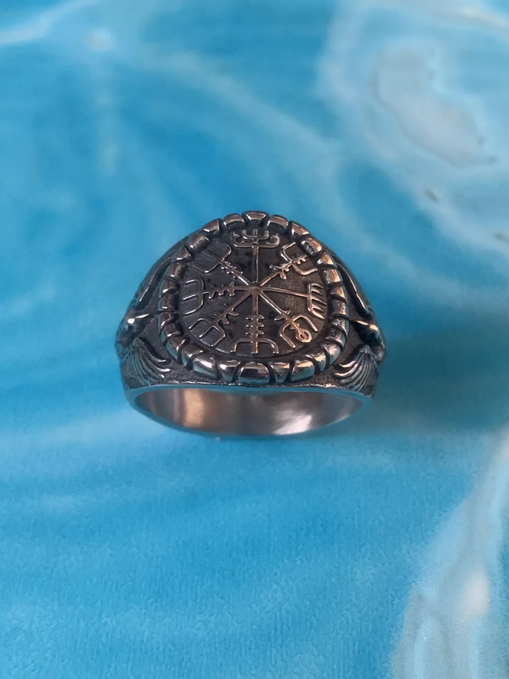 Viking Ring Vegvisir Symbol with Ravens